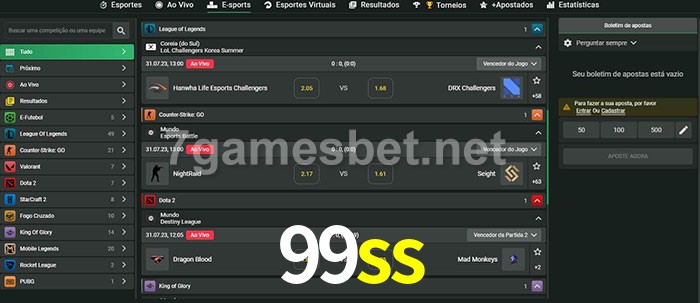O 99ss oferece uma grande seleção de opções de apostas em e-sports com probabilidades competitivas